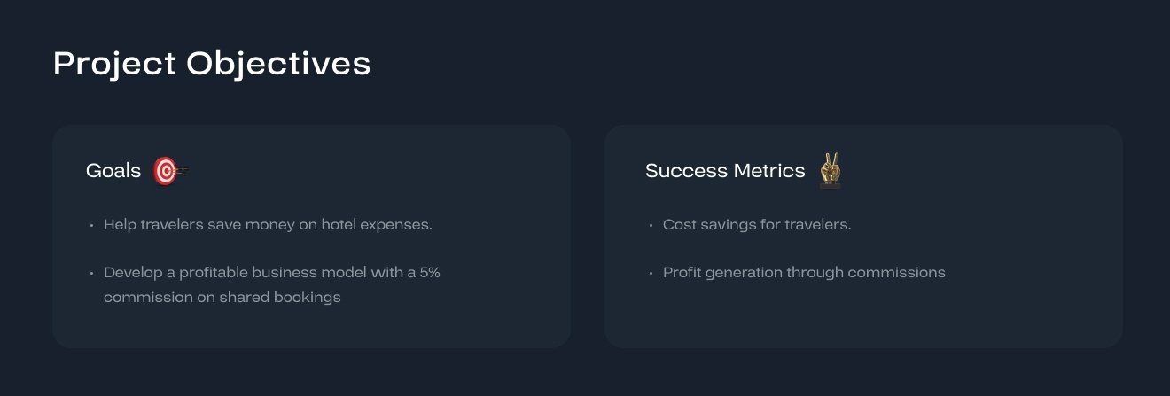The project aimed to create a mobile app enabling solo travelers in the USA to share hotel rooms and split costs, reducing travel expenses. The client sought to validate this concept, understand its feasibility, and develop a basic app flow and wireframe